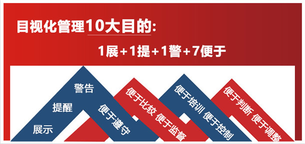 目視化標牌展板設計結合人體視覺感知信息優(yōu)勢,使員工容易明白、易于遵守、樂意執(zhí)行。